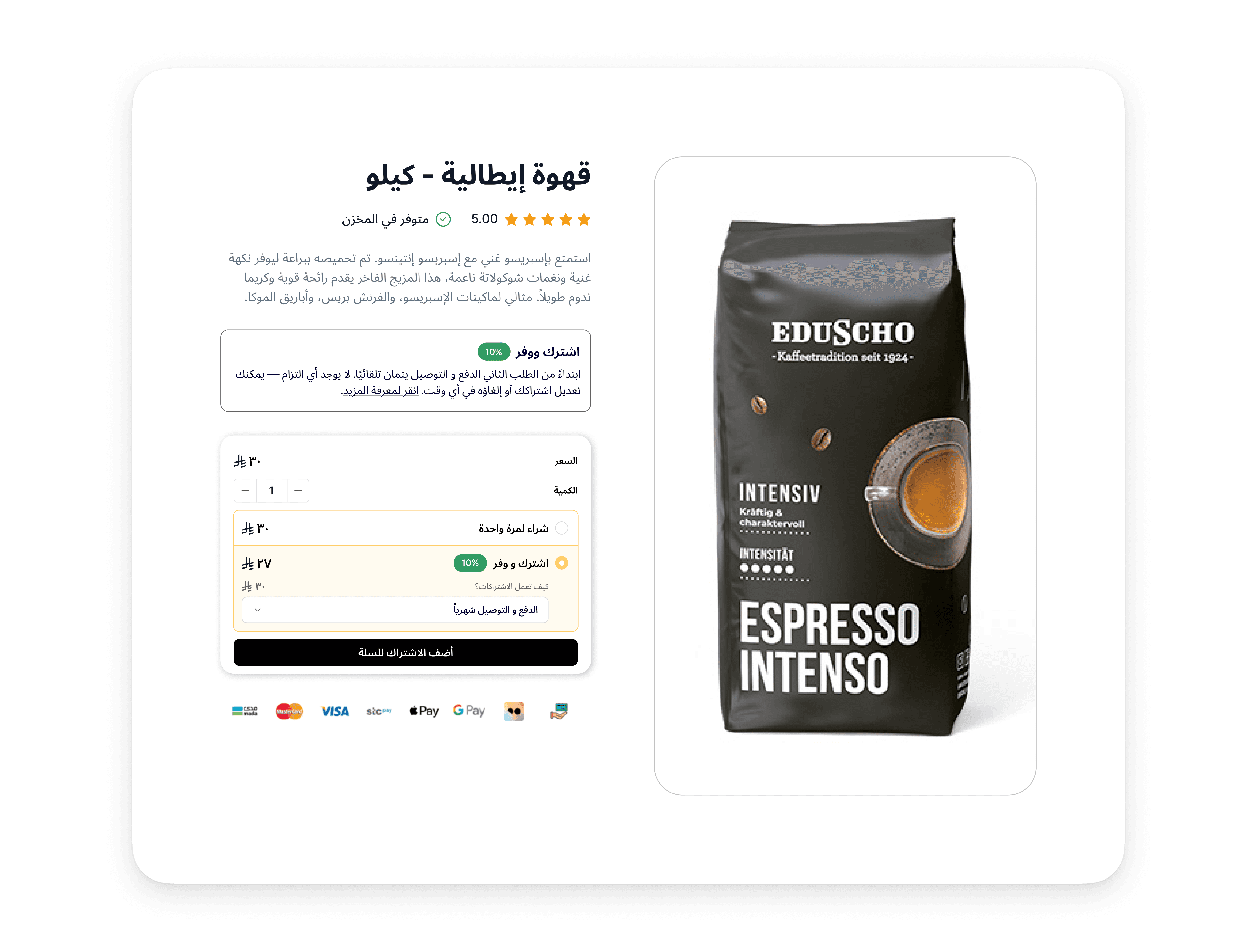 يستطيع عملائك الاشتراك علي منتجاتك بنفس طريقة شراء و دفع أي منتج آخر من خلال سلة بدون بوابات دفع خارجية مما يعزز ثقتهم بمتجرك