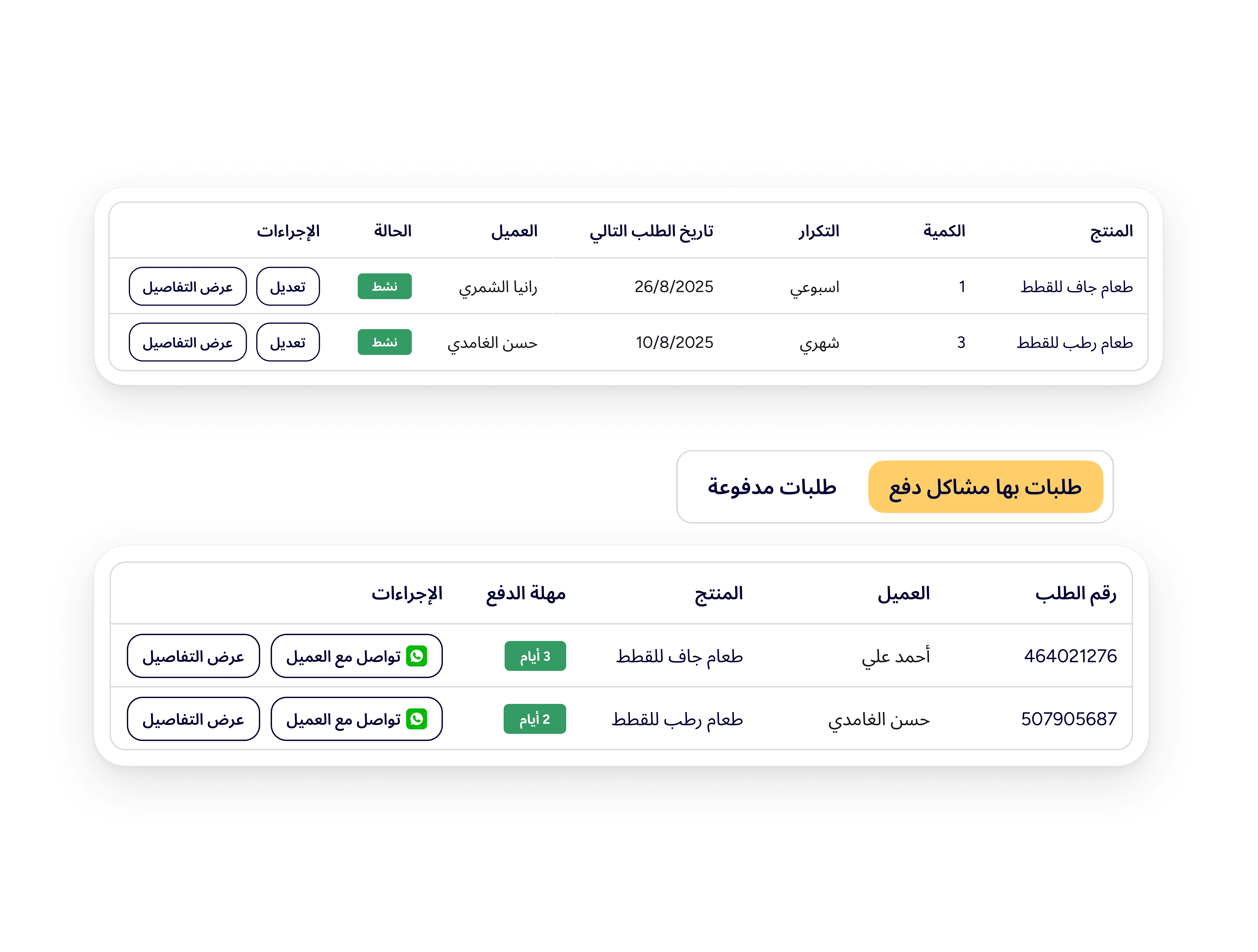 لأن وقتك أثمن من المتابعة، الطلبات تتجدد تلقائيًا في موعدها، والسحب يتم تلقائيًا عبر سلة — لا تذكير، لا متابعة، لا توتر.